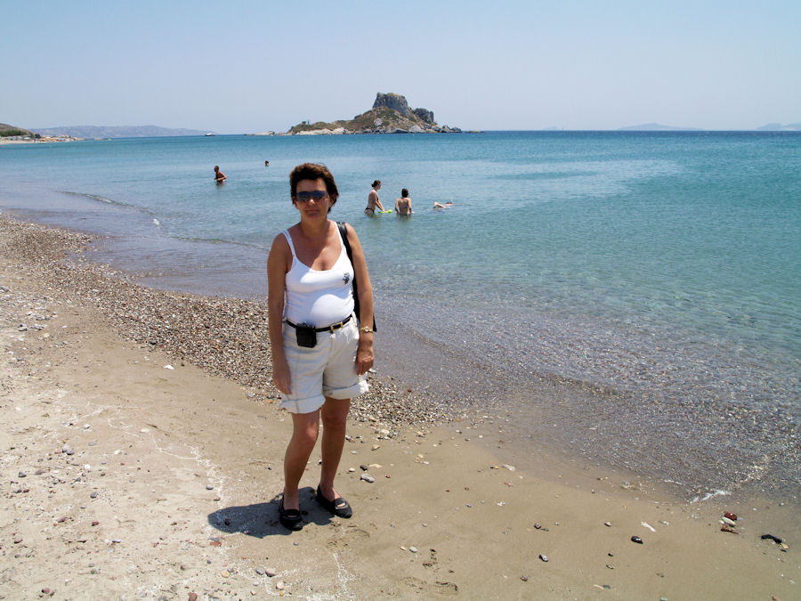 ![]() Bak við Hörpu er Stefánsey við Kefalos (Höfða) á suður Kos. |