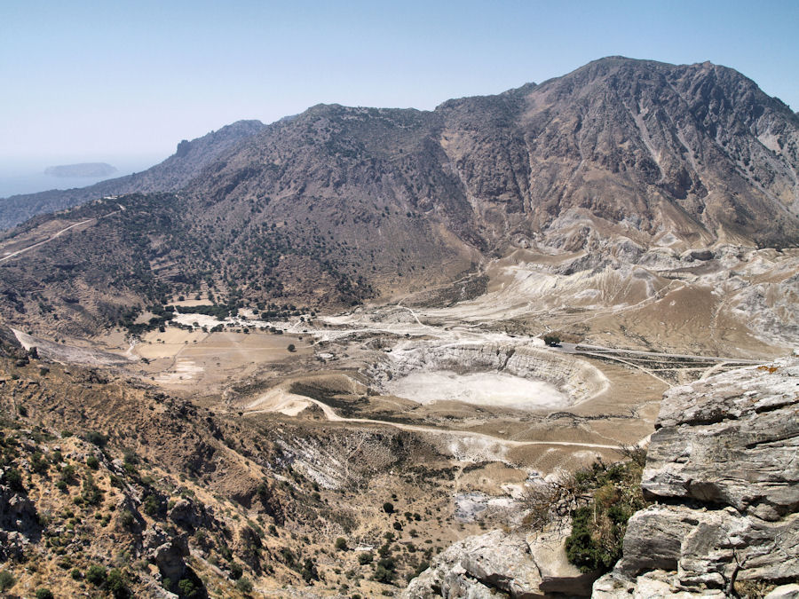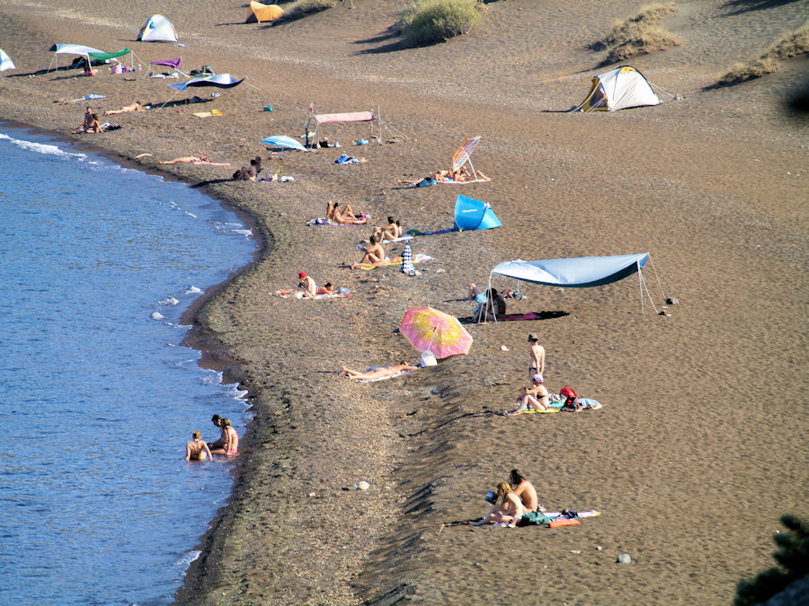 ![]() Eyðifjörður á Nisyros þar sem vinsælt er að tjalda (eða sofa undir berum himni). |