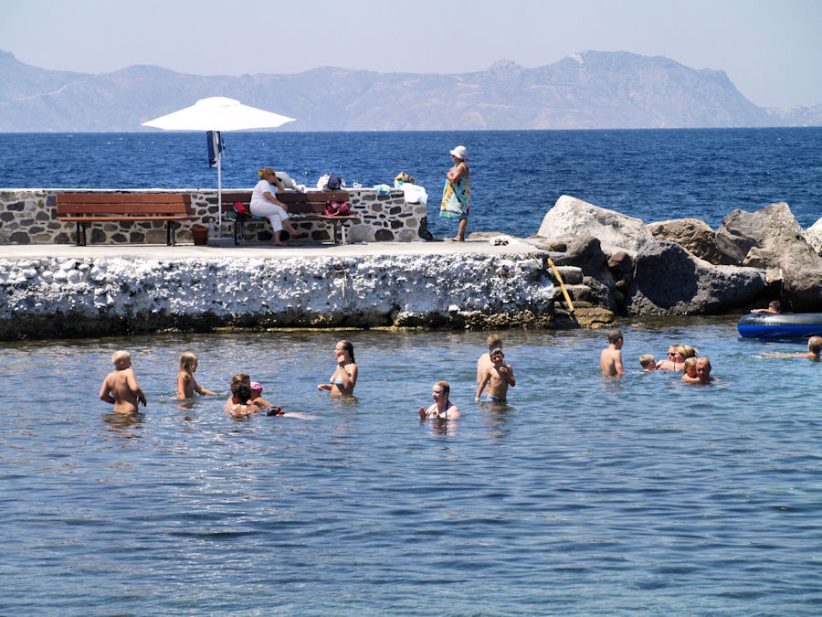 Ferð Atla og Hörpu til Kos og Nisyros sumarið 2009Grísku eyjarnar Kos og Nisyros (stundum ritað Nissyros) eru rétt við strönd Anatólíu (Tyrklands) og tilheyra eyjaklasa sem nefnist Tylftareyjar. Meðal annarra eyja í þeim klasa eru til dæmis Rhodos og Patmos. Við flugum til Bodrum í Tyrklandi þann 17. júlí og gistum þar í eina nótt. Fórum svo með ferju til Kos þar sem við vorum í sjö nætur í höfuðstað eyjarinnar. Frá Kos sigldum við til Nissyros og vorum þar 11 nætur, fórum þá til baka til Kos og gistum þar 2 nætur. Að morgni 7. ágúst sigldum við svo frá Kos til Bodrum, vorum þar daglangt og flugum heim um nóttina. Kos er nokkuð fjölmenn eyja (með um 30.000 íbúa) og þar er mikið um ferðmenn og ferðaþjónusta eins og á öðrum fjölförnum stöðum við Miðjarðarhaf. Nisyros er dreifbýli. Íbúar þar eru milli 900 og 1000. Flestir búa í höfuðstaðnum Mandraki. En þarna eru líka þrjú önnur þorp í byggð: Fjallaþorpin Nikia og Eborios og sjávarplássið Paloi (frb. Palí). Við dvöldum í síðastnefnda þorpinu. Ekki eru skipulagðar sólarferðir til Nisyros þótt allmargir fari þangað á eigin vegum og talsverð umferð skútufólks sé um höfnina í Paloi. Einnig er talsvert um eins dags hópferðir því margir vilja sjá eldgígana á miðri eynni. |