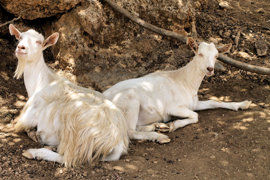 ![]() 30. Rétt hjá Sougia eru rústir borgar frá fyrstu öldum e.Kr. Hún hét Syja. Þar gengur búsmali þorpsbúa: geitur, kindur og hænur. Í Sougia búa um 40 manns allt árið og eiga flestir einhverjar skepnur auk olívutrjáa og annars aldinviðar. Á sumrin er fleira fólk þarna m.a. unglingar úr nærliggjandi þorpum sem vinna við ferðaþjónustu. Bændur í grennd framleiða einkum hunang auk olívuolíu. |