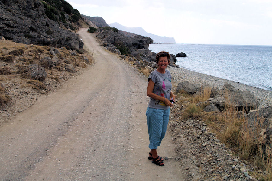 ![]() 33. Í gönguferð frá Paleochora til Anyðroi (frb. Aniðri). Leiðin lá fyrst eftir malarvegi austur með ströndinni, þá um veglaust og nokkuð torfært gil upp til þorpsins sem er í brattri hlíð inni í landi og svo eftir vegi til baka. |