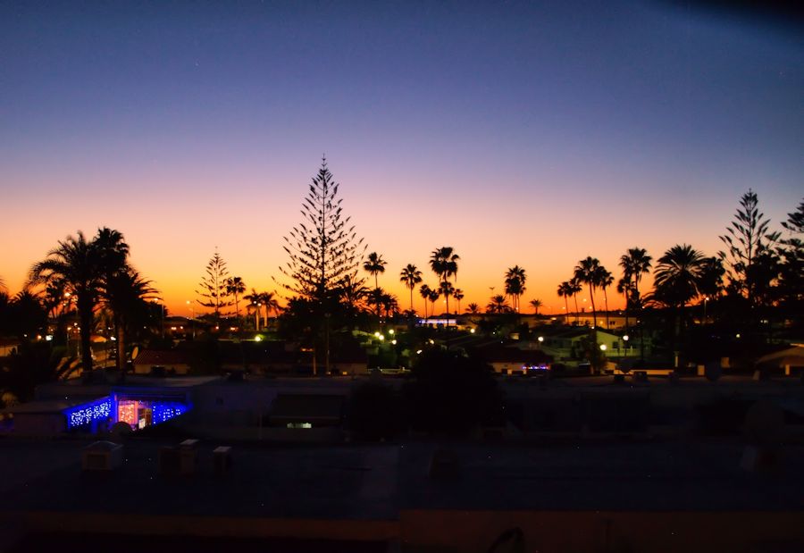 ![]() Sólsetur á svölum Apartamentos Las Camelias á Playa del Ingles. |