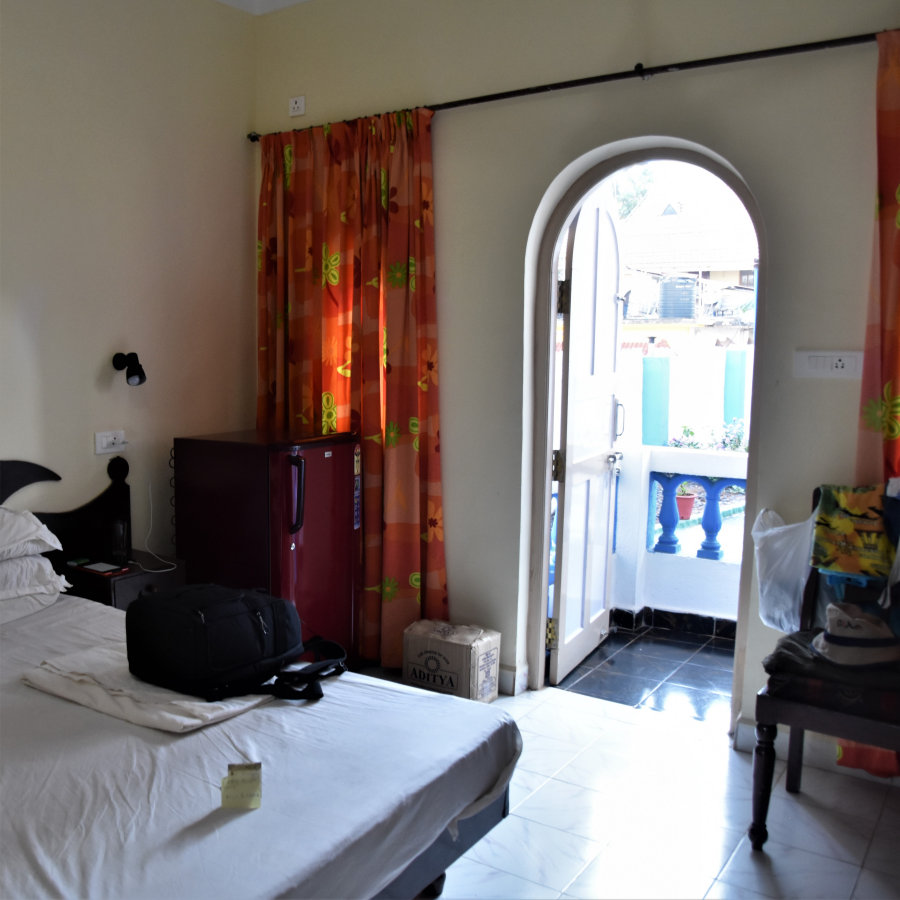 1. Herbergið á Hotel Empire Beach Resort. Enginn lúxus en ísskápur og vifta í loftinu, verönd og baðherbergi með sturtu. |