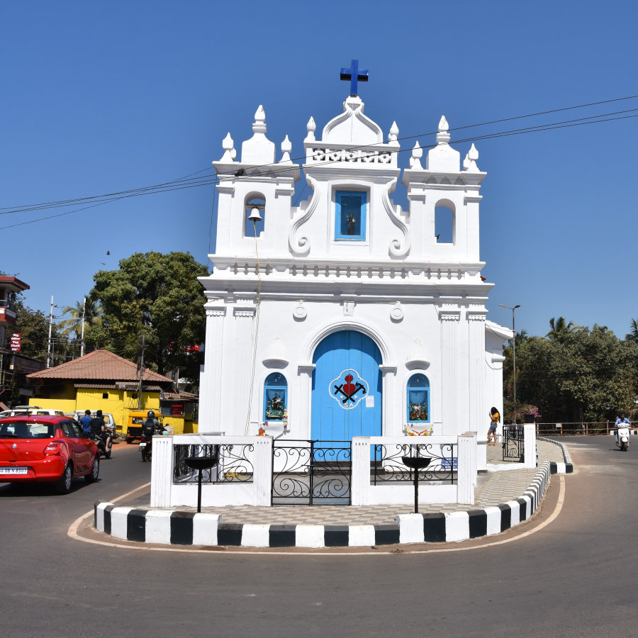 4. Við þessa kirkju er beygt af aðalveginum í gegnum þorpið Calangute inn á um það bil 1 km langan hlykkjóttan afleggjara að hótelinu sem stendur við ströndina. |