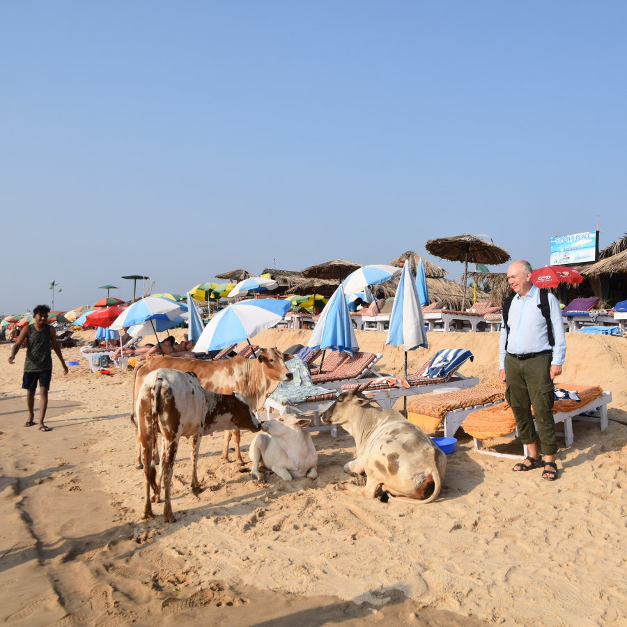 11. Atli á ströndinni í Calangute. Í þorpinu eru nautgripir úti um allt. |
