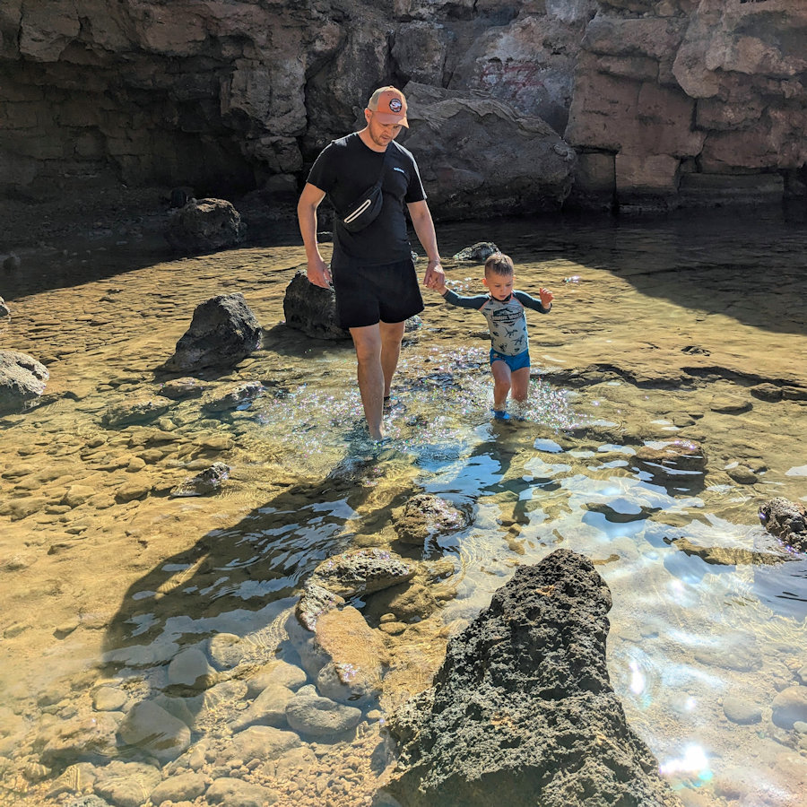 10. Máni og Atli Steinn við ströndina rétt hjá Hotel Kiwi. |