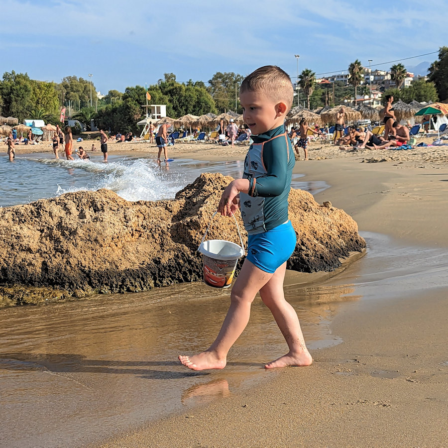 9. Kominn 15. september og Máni, Helga, Atli Steinn og Þorsteinn Heiðar mætt til Daratsos. Þau komu að kvöldi 14. september. Myndin er tekin í víkinni rétt hjá Hotel Kiwi. |