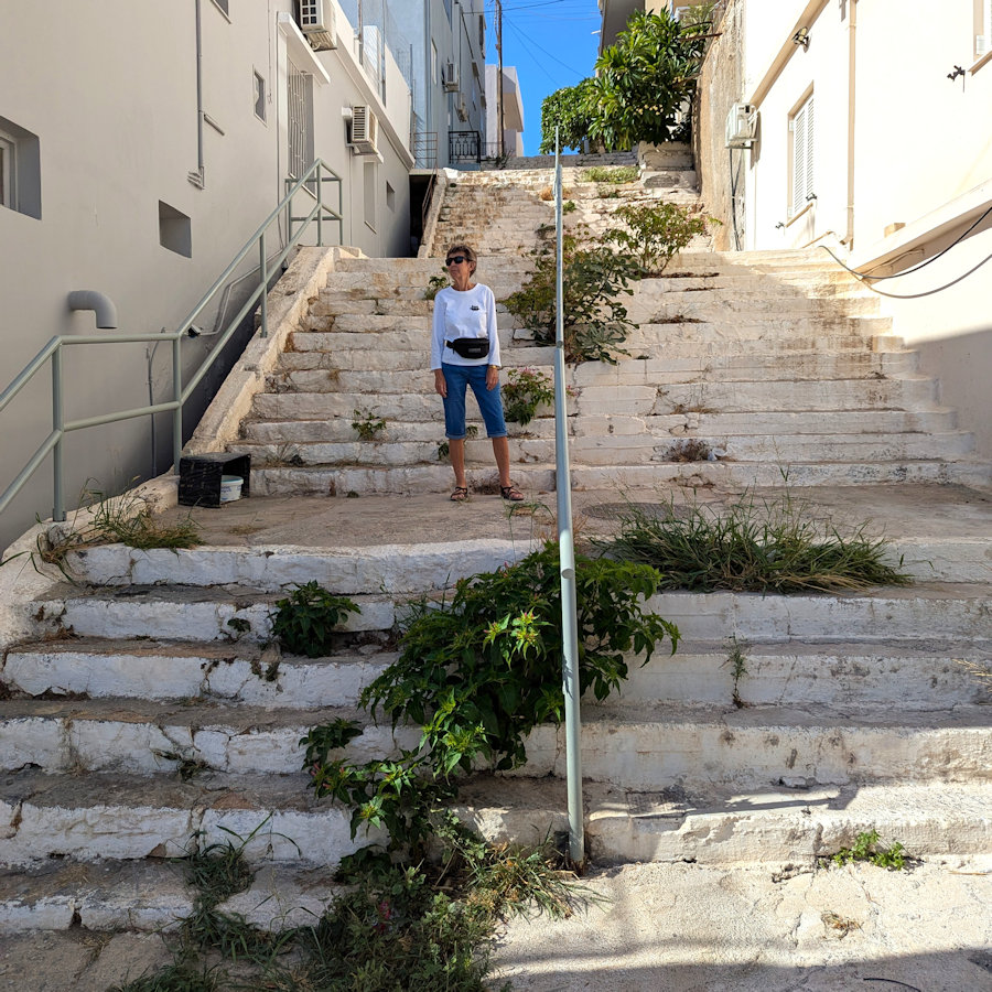 ![]() 8 . Ein af mörgum bröttum göngugötum í Agios Nikolaos. |