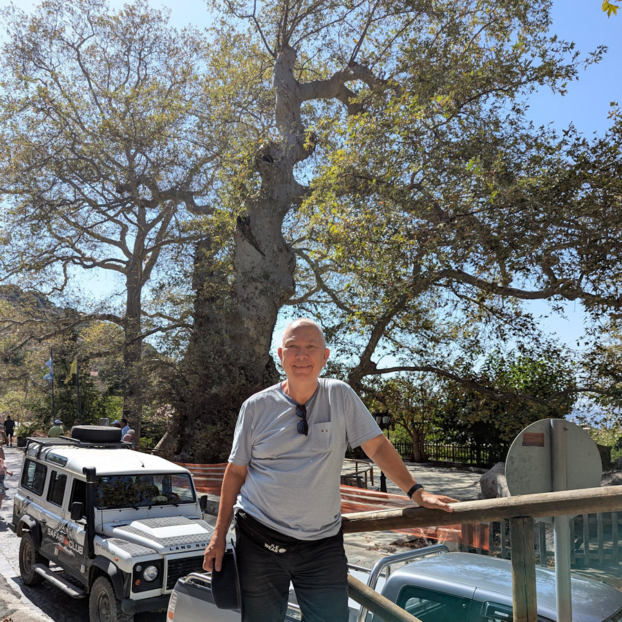 ![]() 20. Atli hjá krónubreiðnum (platanos-trénu) í Krasi sem er um 2.500 ára gamalt. |