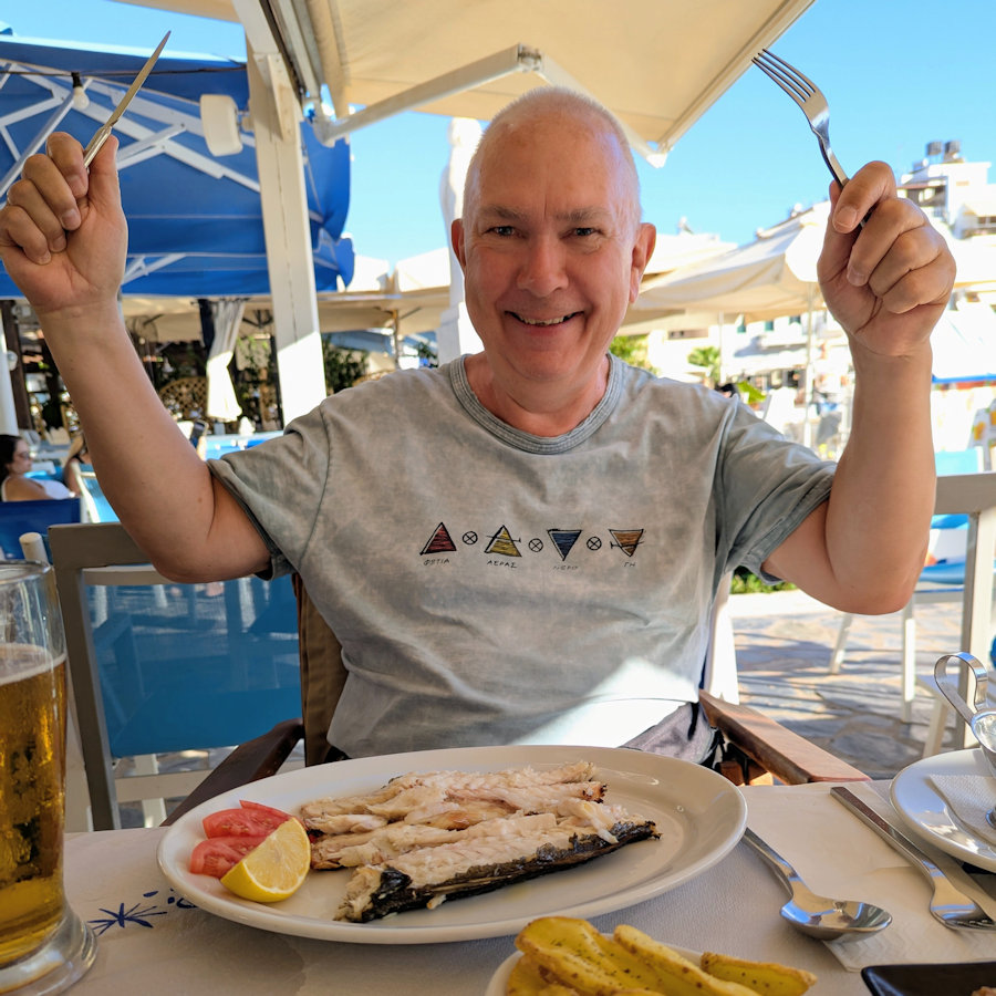 ![]() 21. Grillaður hafbarri á veitingastað í Agios Nikolaos. |